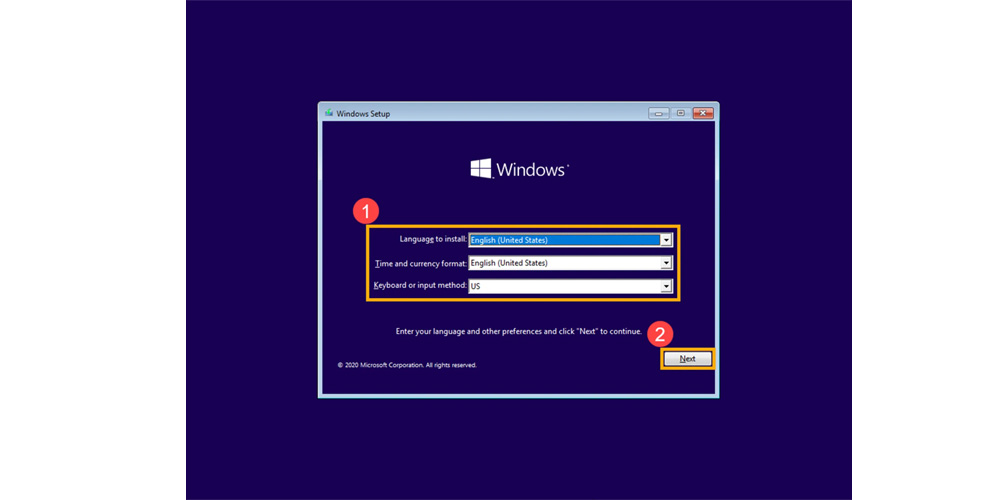 - پس از بوت شدن سیستم از فلش، صفحه نصب ویندوز نمایش داده میشود. زبان، زمان و نوع صفحهکلید را انتخاب کرده و روی "Next" کلیک کنید. سپس گزینه "Install Now" را انتخاب کنید.